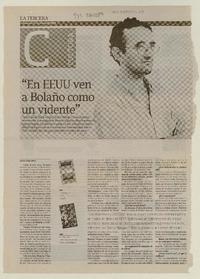 "En EEUU ven a Bolaño como un vidente" [artículo] / Andrés Gómez Bravo. La Tercera de la Hora (Diario : Santiago, Chile)-- mar. 22, 2009, p. 86-87. .
