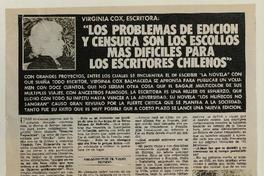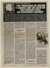 Los problemas de edición y censura son los escollos más difíciles para los escritores chilenos": [entrevista] [artículo] / Zayda Cataldo. Cosas (Santiago, Chile)-- no. 114 (feb. 12, 1981) p. 48-49. retr. .