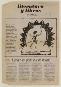 Carta a un poeta que ha muerto (entrevista) [artículo] La Época (Diario : Santiago, Chile)-- Año 1, no. 3, abr. 30, 1988, p. 1-4. .