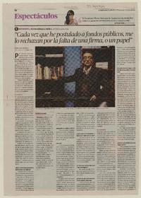 "Cada vez que he postulado a fondos públicos, me lo rechazan por la falta de una firma, o un papel" (entrevista) [artículo] / Víctor Toloza Jiménez. El Mercurio (Diario : Antofagasta, Chile)-- jun. 23, 2013, p. 46. .