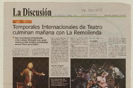Temporales internacionales de teatro culminan mañana con la remolienda. [artículo]