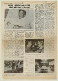 Chile lamenta deceso del padre G. Le Paige. [artículo] Semanario Oasis (Chuquicamata, Chile)-- mayo 24, 1980, p. 3. retr. .