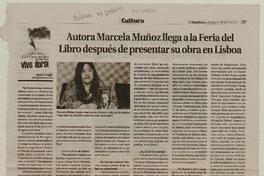 Autora Marcela Muñoz llega a la feria del libro después de presentar su obra en Lisboa (entrevista) [artículo] André Jouffé.