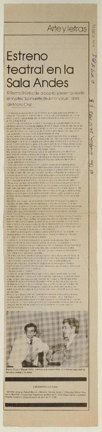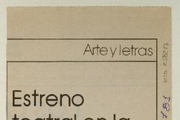Estreno teatral en la Sala Andes. [artículo]