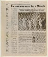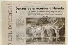 Danzas para recordar a Neruda [artículo] Salvatore Bellemo Filonzi El Diario Austral (Valdivia, Chile)-- oct. 10, 2004, o. A28 fot. .