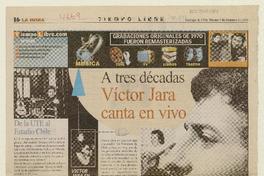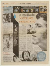 A tres décadas Víctor Jara canta en vivo. [artículo] La Hora (Diario : Santiago, Chile)-- oct. 7, 2003, p. 16. retr. .