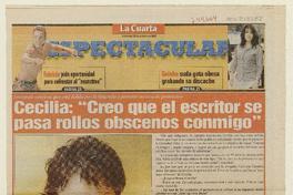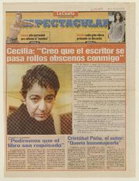 Cecilia, "creo que el escritor se pasa rollos obscenos conmigo" intérprete confiesa que está dolida por la biografía y presentó recurso de protección. [artículo] : La Cuarta (Diario : Santiago, Chile)-- oct. 30, 2002. .