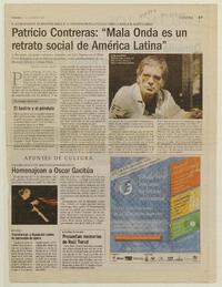 Patricio Contreras, "Mala onda es un retrato social de América Latina [artículo] / Andrés Gómez Bravo. La Tercera (Diario : Santiago, Chile) -- nov. 19, 2002, p. 37. retr. .