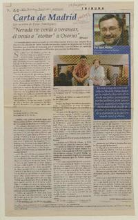 "Neruda no venía a veranear, él venía a "otoñar" a Osorno" los secretos de Delia Domínguez / [artículo] : por John Müller. El Diario Austral (Diario : Osorno, Chile) -- jun. 15, 2003, p. A2. retr. .