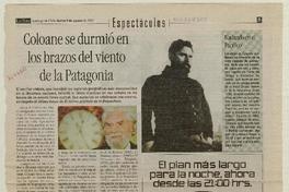 Coloane se durmió en los brazos del viento de la Patagonia [artículo] La Hora (Diario : Santiago, Chile) -- ago. 8, 2002, p. 15. retr. .