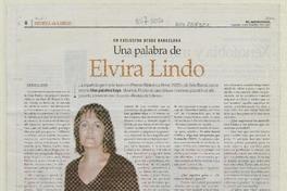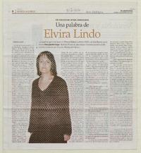 Una Palabra de Elvira Lindo (entrevistas) [artículo] Mauricio Electorat El Mercurio (Santiago, Chile)-- feb, 11, 2005, p. 8 (suplemento "Revista de libros") retr. .