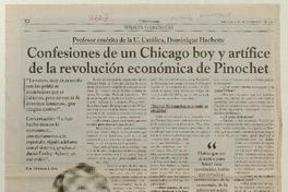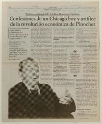 Confesiones de un Chicago boy y artífice de la revolución económica de Pinochet : [entrevistas] [artículo] / Miriam Leiva. La Segunda (Diario : Santiago, Chile)-- sept. 17, 2003, p. 32. retr. .