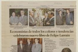 Economistas de todos los colores y tendencias celebraron nuevo libro de Felipe Larraín [artículo] La Segunda (Santiago, Chile)-- dic. 1, 2004, p. 24 retr. .