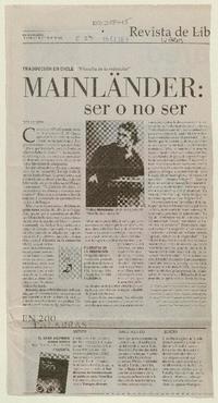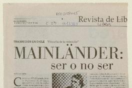 Mainländer : ser o no ser [artículo] Patricio Tapia.
