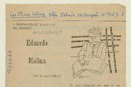 Eduardo Molina [artículo] / Enrique Bello. Las Últimas Noticias (Diario : Santiago, Chile)-- ago. 14, 1965, p. 5. .