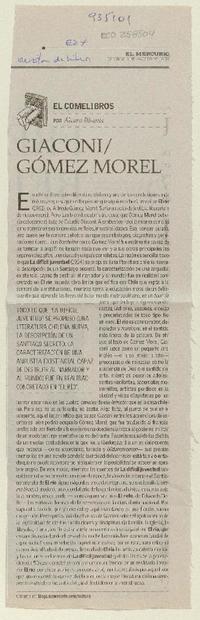 Giaconi / Gómez Morel [artículo] / Alvaro Bisama. El Mercurio (Diario : Santiago, Chile)-- ago. 3, 2008, p. E24 (Revista de libros) .