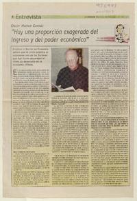 "Hay una proporción exagerada del ingreso y del poder económico" [entrevista] / [artículo] : Jorge Abasolo Aravena. El Labrador (Diario : Melipilla, Chile)-- jun. 29, 2008, p. 8 (suplemento "Reportajes en Domingo") .