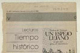 Tiempo histótico que encierra los signos de nuestro tiempo [artículo] / Dieter Oelker. El Sur (Diario : Concepción, Chile)-- jul. 13, 1986, p. 5. il. .