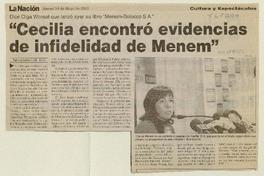 Cecilia encontró evidencias de infidelidad de Menem" [artículo] Patricia Cerda.