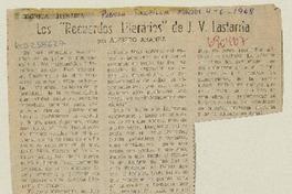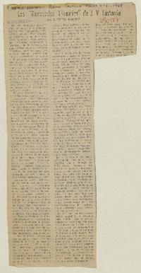 Los "Recuerdos literarios" de J. V. Lastarria [artículo] / Alfredo Aranda. La Prensa (Diario : Tocopilla, Chile)-- abr. 4, 1968. .
