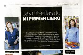 Las miserias de mi primer libro [artículo] / Tamy Palma y Carlos Pérez; Foto: Roberto Candia. La Tercera (Diario : Santiago, Chile)-- abr. 20, 2019, p. 8-10 (suplemento "Tendencias") .