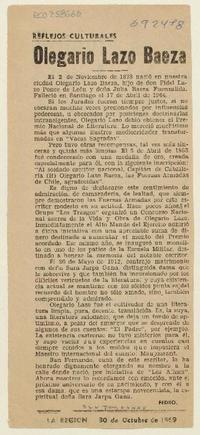 Olegario Lazo Baeza [artículo] / Fedro. La Región (Diario : San Fernando, Chile)-- oct. 30, 1969. .
