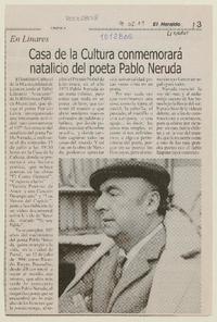 Casa de la Cultura conmemorará natalicio del poeta Pablo Neruda [artículo]