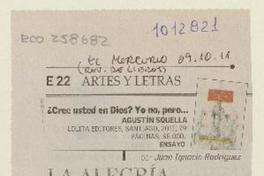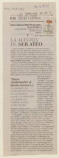 La alegría de ser ateo [artículo] / Juan Ignacio Rodríguez. El Mercurio (Diario : Santiago, Chile)-- oct. 9, 2011, p. E22 .