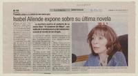 Isabel Allende expone sobre su última novela [artículo]. La Estrella (Diario : Iquique, Chile)-- ago. 20, 2011, p. A16. .