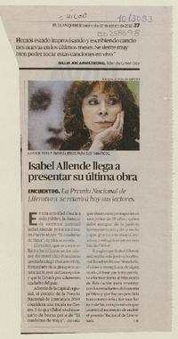 Isabel Allende llega a presentar su última obra [artículo]. El Llanquihue (Diario : Puerto Montt, Chile)-- ago. 17, 2011, p. 27. .