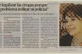 "Hay que legalizar las drogas porque no es un problema militar ni policial" [artículo] / Mauricio Mondaca. El Austral (Diario : Temuco, Chile)-- ago. 25, 2011, p. 31. .