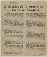 A 90 años de la muerte de José Victorino Lastarria [artículo] / Héctor González V. El Rancagüino (Rancagua, Chile)-- jun. 13, 1978, p. 4. .