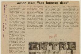Omar Lara: "los buenos días" [artículo] / Floridor Pérez. La Tribuna (Diario : Los Angeles, Chile)-- sept. 23, 1972, p. 4. .