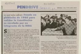 Fraude en plebiscito de 1980 para validar la Constitución es revelado por ex integrante de la DINA [artículo]. Cambio 21 (Diario : Santiago, Chile)-- jun. 13, 2012, p. 6. .