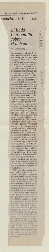 El hada Campanilla sobre el abismo [artículo] / Rosa Montero. El País (Diario : España)-- nov. 25, 2010, p. 38. .