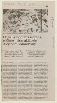 Llega La montaña sagrada, el filme más maldito de Alejandro Jodorowsky [artículo] / Rodrigo González M. La Tercera (Diario : Santiago, Chile)-- nov. 27, 2010, p. 87. .