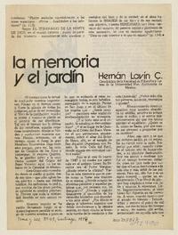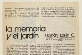La memoria y el jardín. [artículo] Toma y Lee (Santiago, Chile)-- no. 48 (1978) p. 26-29. .