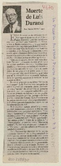 Muerte de Luis Durand [artículo] Marino Muñoz Lagos.