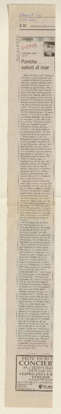 Pancho volvió al mar [artículo] José Miguel Varas.