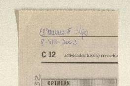 Fuente: El Mercurio (Diario : Santiago, Chile) -- ago. 8, 2002, p. C12.