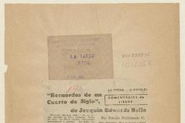 Recuerdos de un cuarto de siglo [artículo] / Aurelio Maldonado U. La Tarde (Diario : Santiago, Chile)-- abr. 6, 1966. .