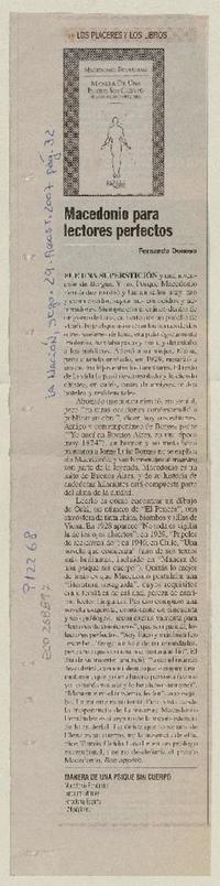 Macedonio para lectores perfectos [artículo] Fernanda Donoso.