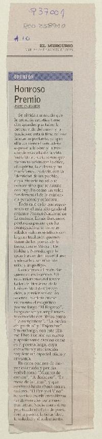 Honroso premio [artículo] / Jaime Valdivieso. El Mercurio (Diario : Santiago, Chile)-- ago. 26, 2008, p. A10. .