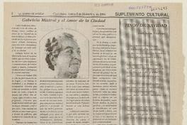 Gabriela Mistral y el amor de la ciudad [artículo]. El Diario de Aysén. -- dic. 5, 1994, p. 2 (suplemento) .