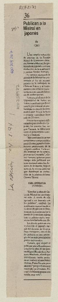 Publican a la Mistral en japonés [artículo]. La Nación. -- ene. 24, 1994, p. 36 .