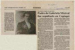 Padre de Gabriela Mistral fue sepultado en Copiapó [artículo]. Atacama. -- mar. 16, 1993, p. 3. .
