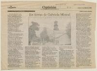 En tierras de Gabriela Mistral [artículo] / Jaime Gómez Rogers. La Nación. -- jul. 3, 1995, p. 4. .