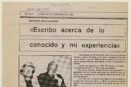 Enrique Araya Gómez, "Escribo acerca de lo conocido y mi experiencia" [artículo].