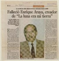 Falleció Enrique Araya, creador de "La luna era mi tierra" [artículo] / R. V. La Epoca. -- abr. 16, 1994, p. B12 retr. .