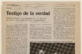 Testigo de la verdad [artículo] / Ana María Foxley. Hoy. -- no. 443 (ene. 13, 1986) p. 47-48 retr. .
